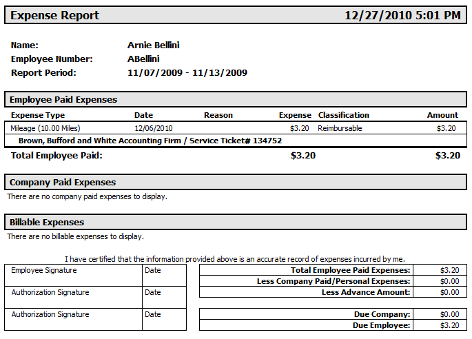 The individual Expense Report contains detailed information on the expense, as well as signature boxes for authorization.